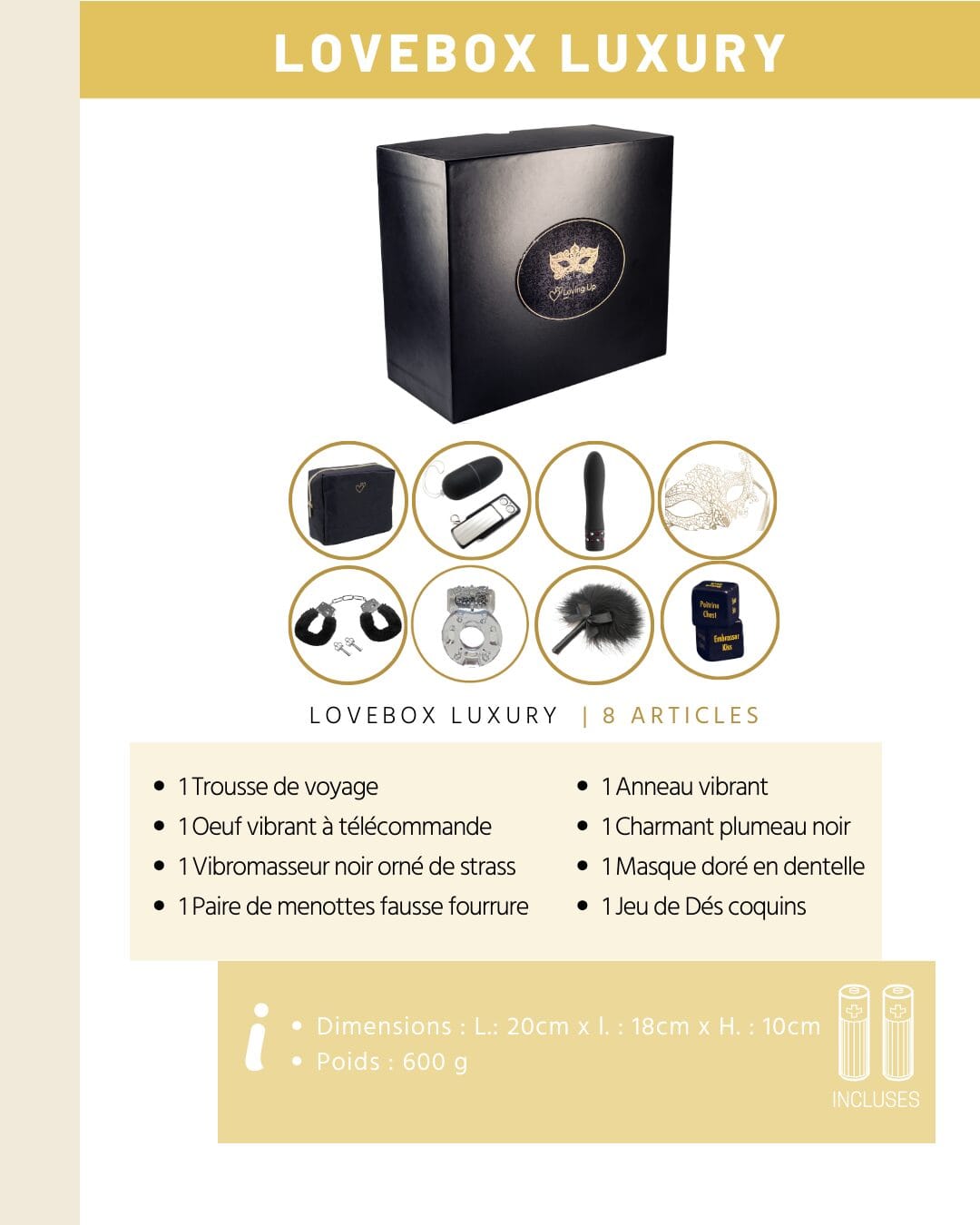 • Love box luxury 8 accessoires (voir photo) : 55.00€