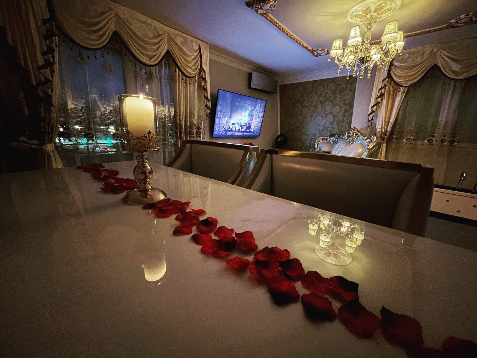 " Magnifique appartement, une soirée en amoureux merveilleuse , avec la décoration qui va avec !!!